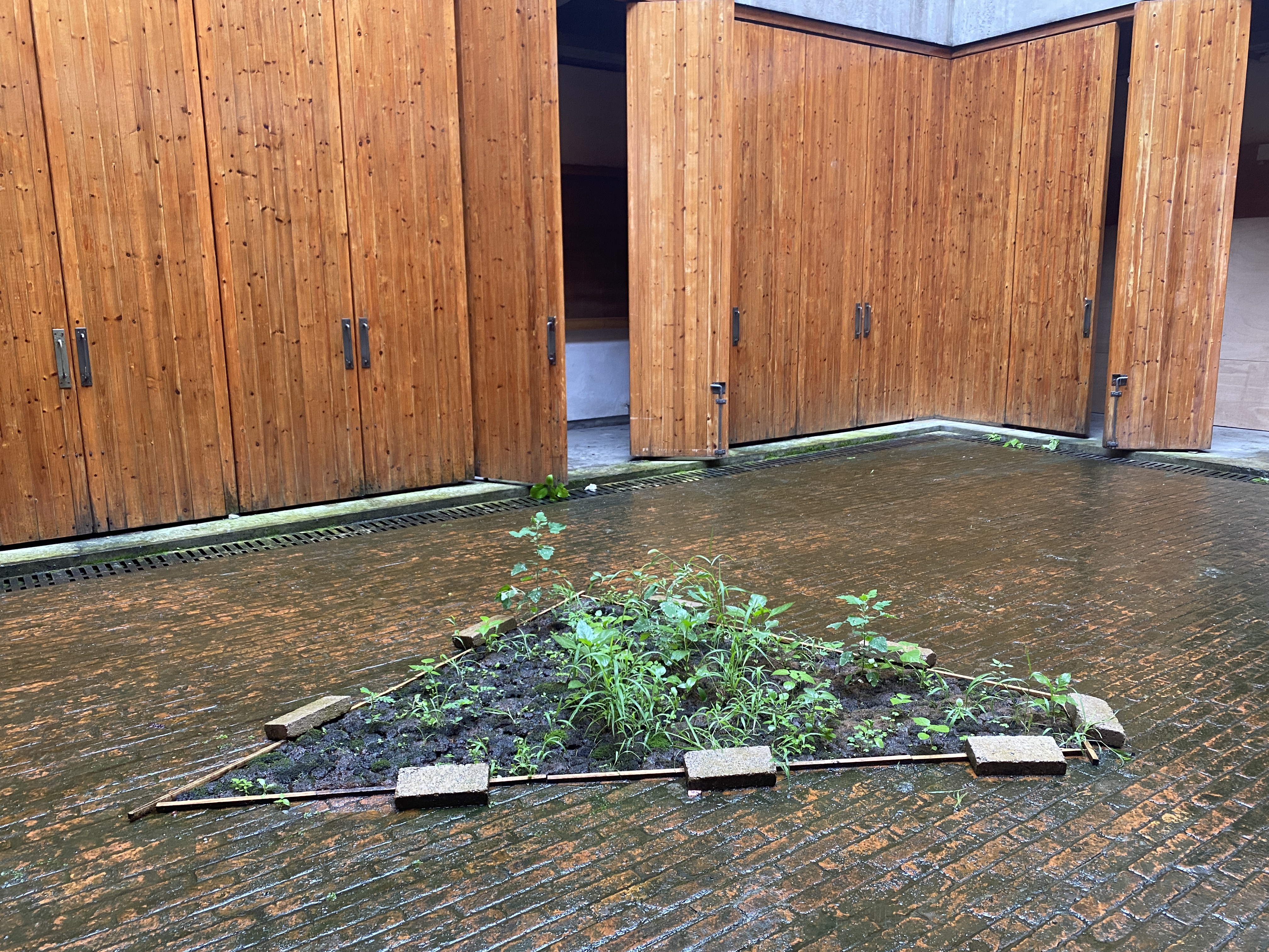 Two architects collected moss and earth to fill the triangle. They filled the triangle with mud and moss and gave it plenty of water, but by the following morning the cleaners had cleared up the mess.